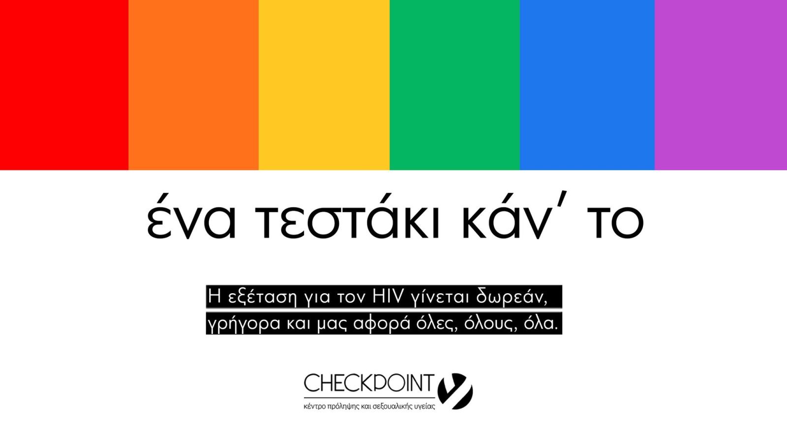 Tα Κέντρα Πρόληψης & Σεξουαλικής Υγείας Checkpoint μόλις κυκλοφόρησαν τη νέα τους καμπάνια με κεντρικό μήνυμα το «Ένα τεστάκι κάν’το» και με σκοπό να προτρέψουν το κοινό να ενημερωθεί και να εξεταστεί για τον HIV.